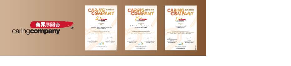 Guardian Property Management Limited has received the “20 Years Plus Caring Company” logo under the Caring Company Scheme 2023/24 organised by The Hong Kong Council of Social Service, while Security and Safety Limited and Guard Able Limited received the "15 Years Plus” and "10 Years Plus” Caring Company recognitions, respectively.